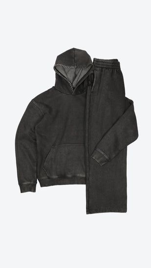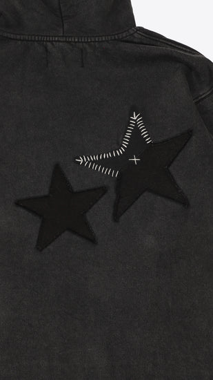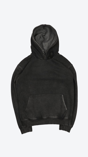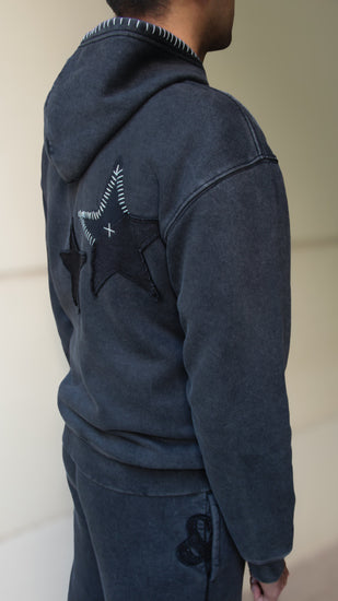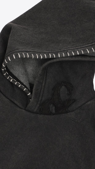 Denim patchwork meets threaded accents on the pocket, hood & back — giving this oversized silhouette a crafted edge that still feels effortless.